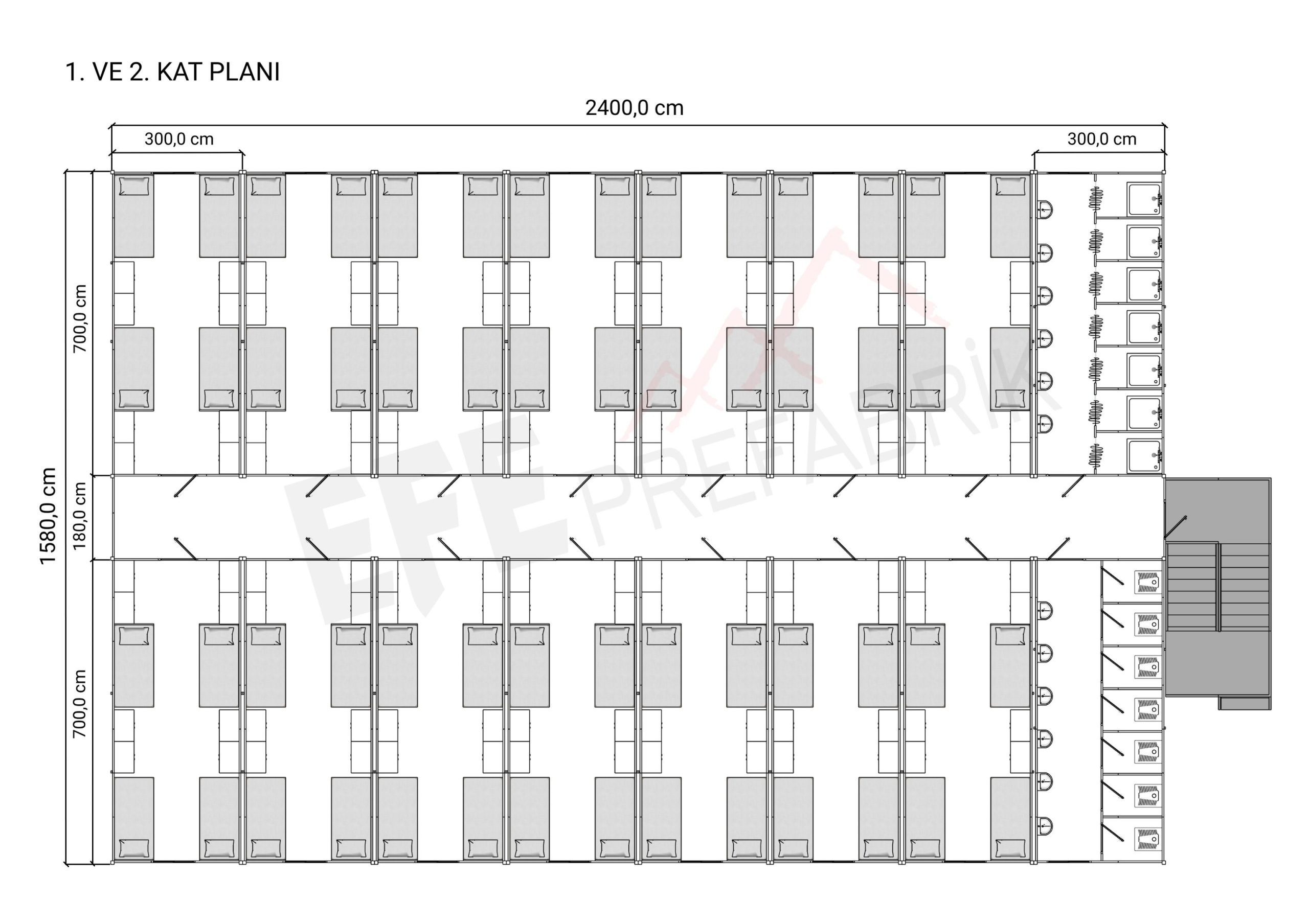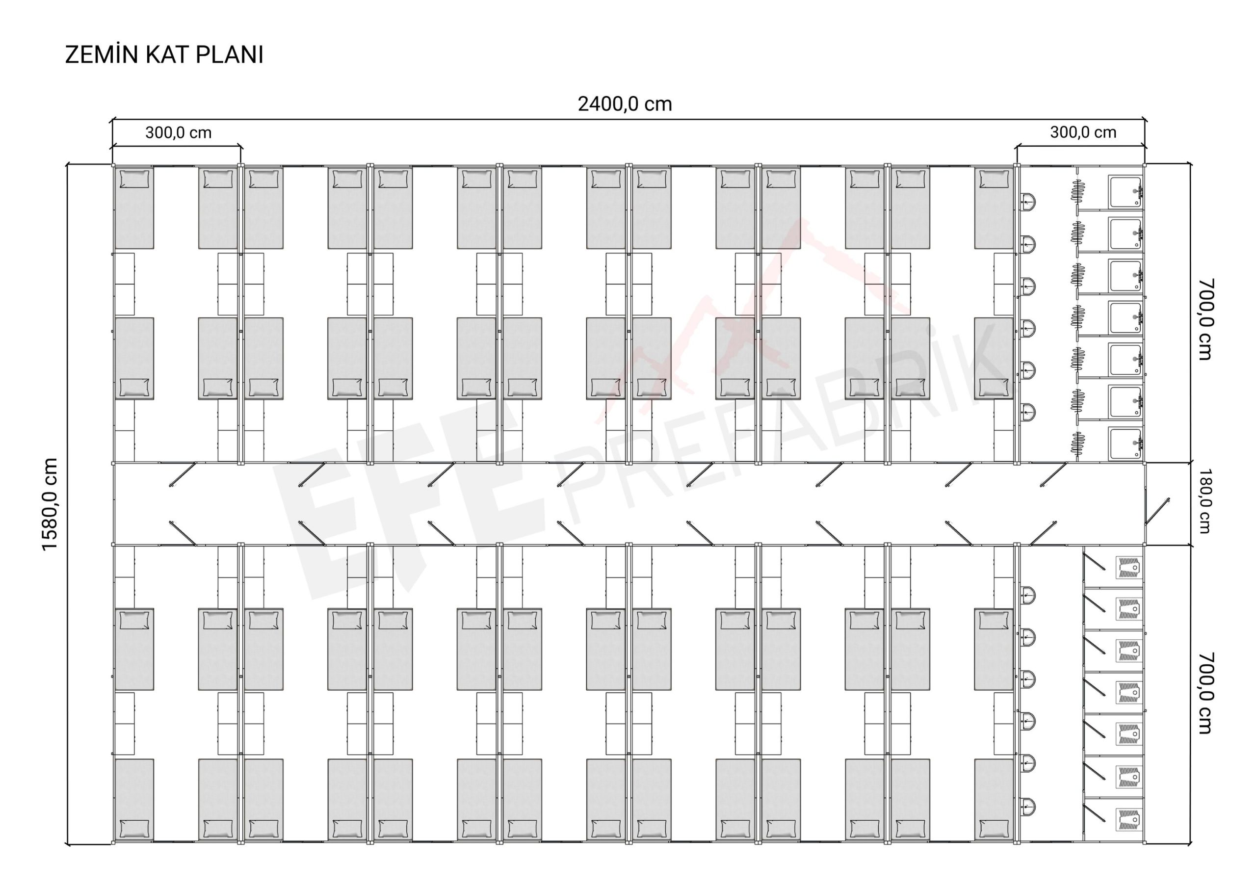 Efe Prefabrik, büyük ölçekli şantiye projeleri, enerji ve maden sahaları, altyapı yatırımları ve geçici yerleşim alanları için yüksek dayanımlı, yalıtımlı ve hızlı kurulabilen işçi yatakhane konteynerleri üretmektedir. Modüler yapı teknolojimiz, hem personel konforunu artırır hem de projelerin zaman ve maliyet verimliliğini güçlendirir.