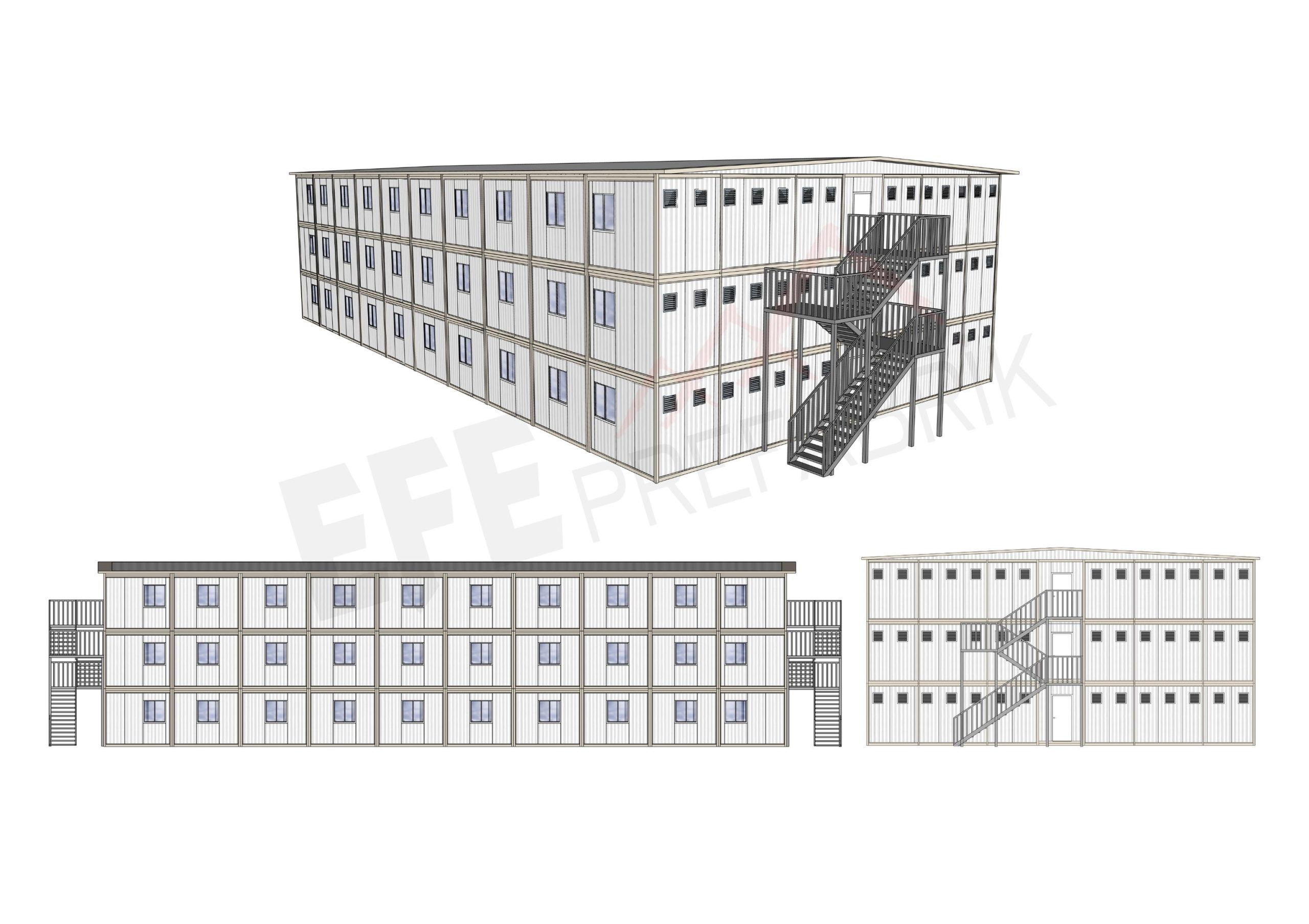 Efe Prefabrik, büyük ölçekli şantiye projeleri, enerji ve maden sahaları, altyapı yatırımları ve geçici yerleşim alanları için yüksek dayanımlı, yalıtımlı ve hızlı kurulabilen işçi yatakhane konteynerleri üretmektedir. Modüler yapı teknolojimiz, hem personel konforunu artırır hem de projelerin zaman ve maliyet verimliliğini güçlendirir.