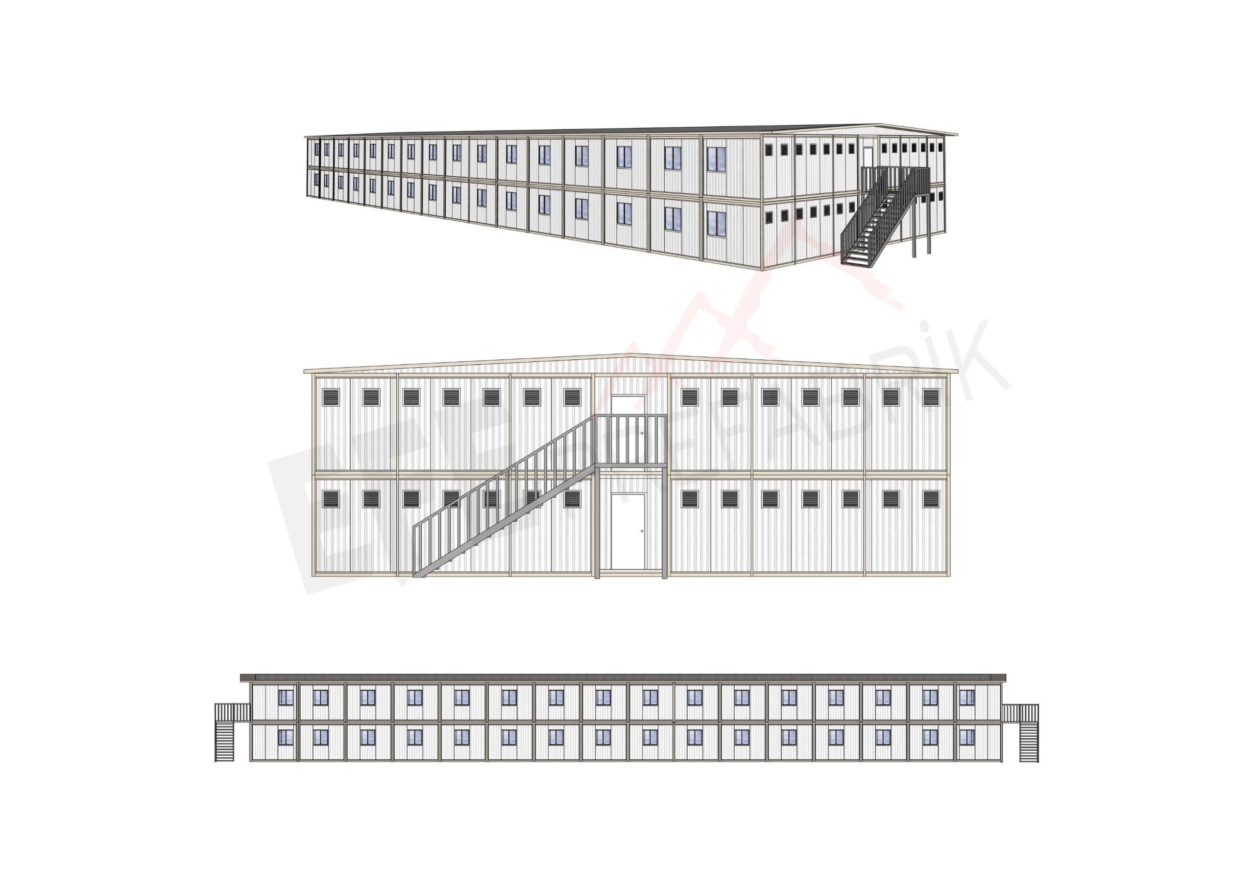 Çelik taşıyıcı sistem, yüksek izolasyon değerine sahip sandviç paneller, çift cam PVC pencereler ve fabrika çıkışlı elektrik–mekanik tesisat altyapısı ile tüm yatakhane çözümlerimiz uzun ömürlü, güvenli ve dört mevsim kullanıma uygundur. Kapasite ihtiyaçlarına göre tek katlı, çoklu modül veya grup katlı çözümler sunulabilir.