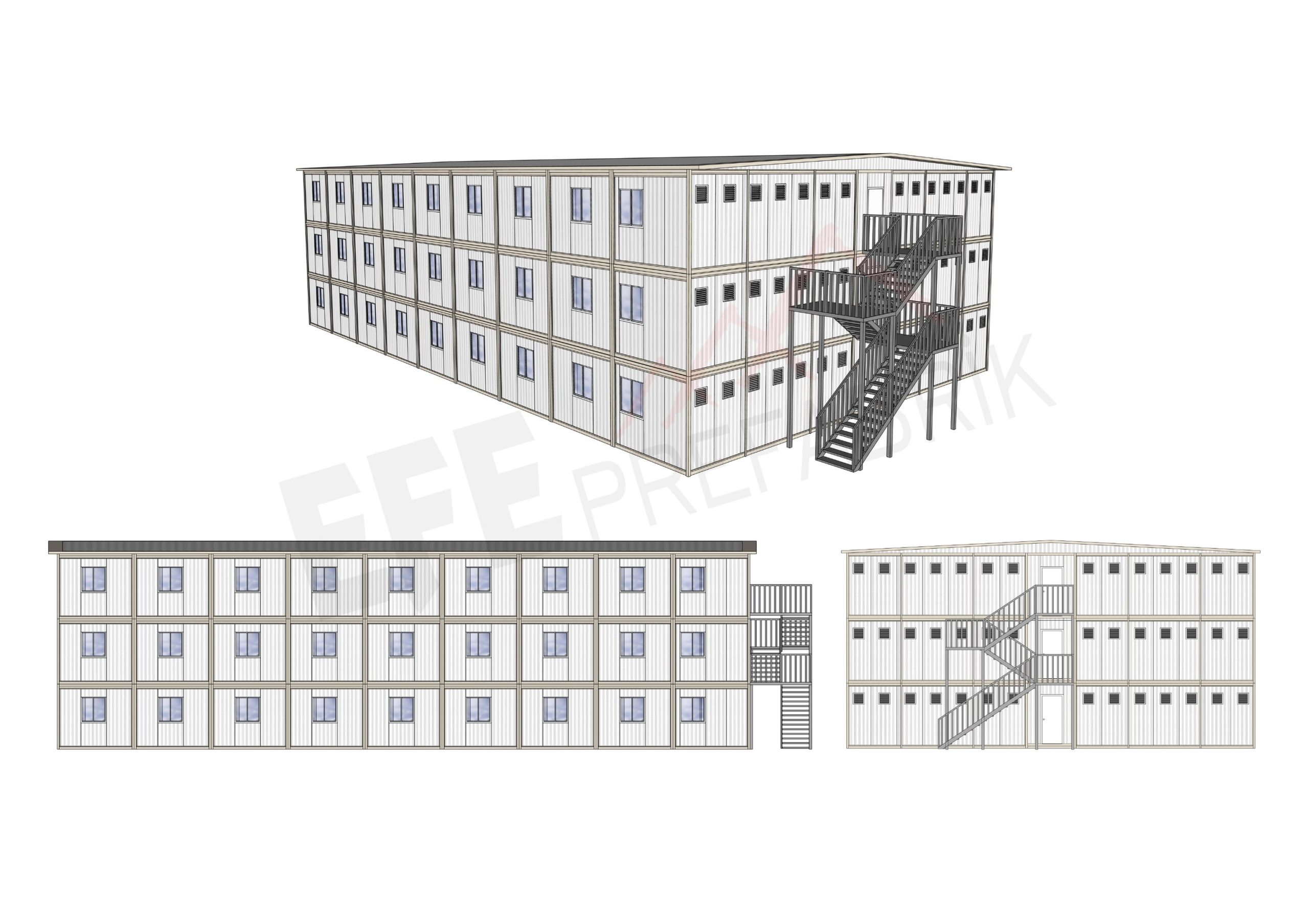 Efe Prefabrik, büyük ölçekli şantiye projeleri, enerji ve maden sahaları, altyapı yatırımları ve geçici yerleşim alanları için yüksek dayanımlı, yalıtımlı ve hızlı kurulabilen işçi yatakhane konteynerleri üretmektedir. Modüler yapı teknolojimiz, hem personel konforunu artırır hem de projelerin zaman ve maliyet verimliliğini güçlendirir.