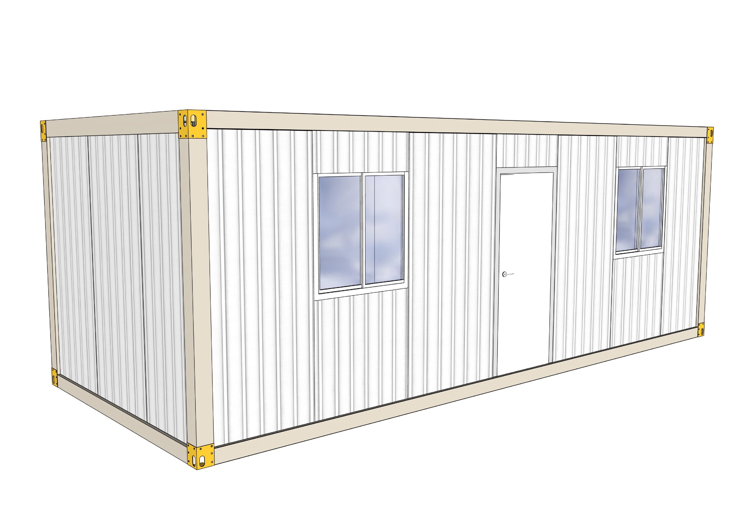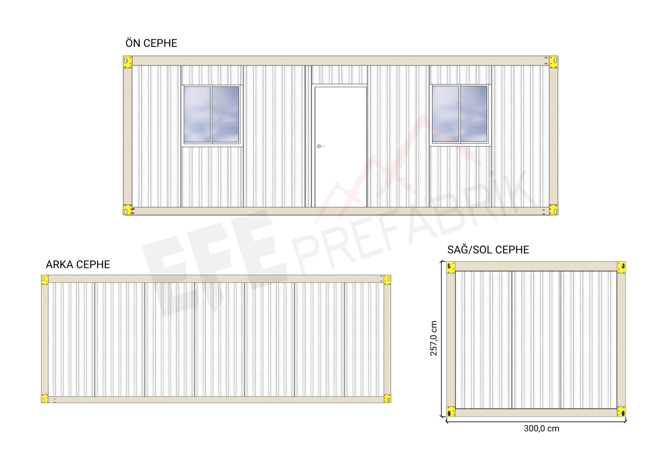 Konteyner tabanlarına güçlendirilmiş galvaniz şase üzerine 14 mm Fibercement kaplanmaktadır. Çürümez, esnemez!