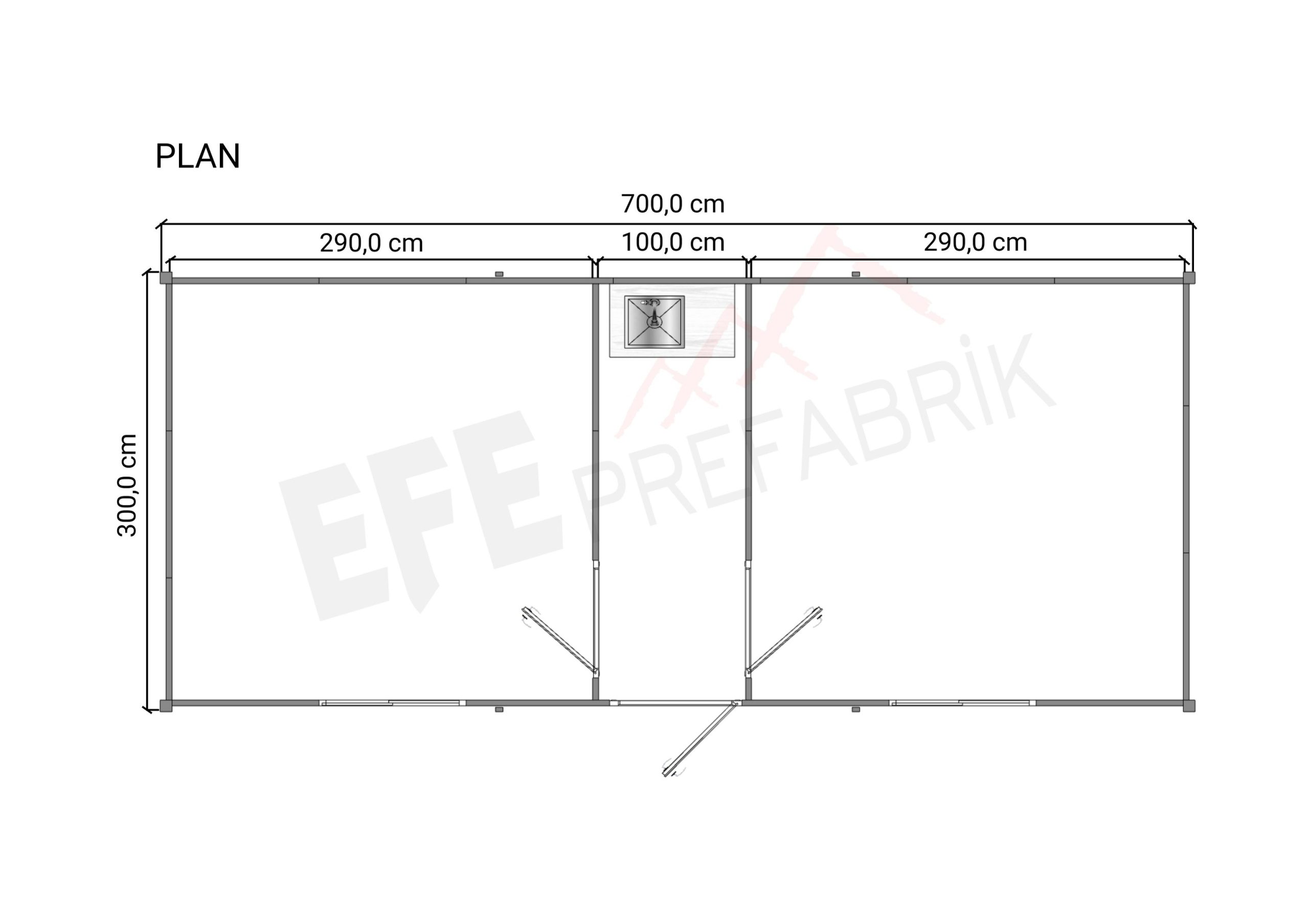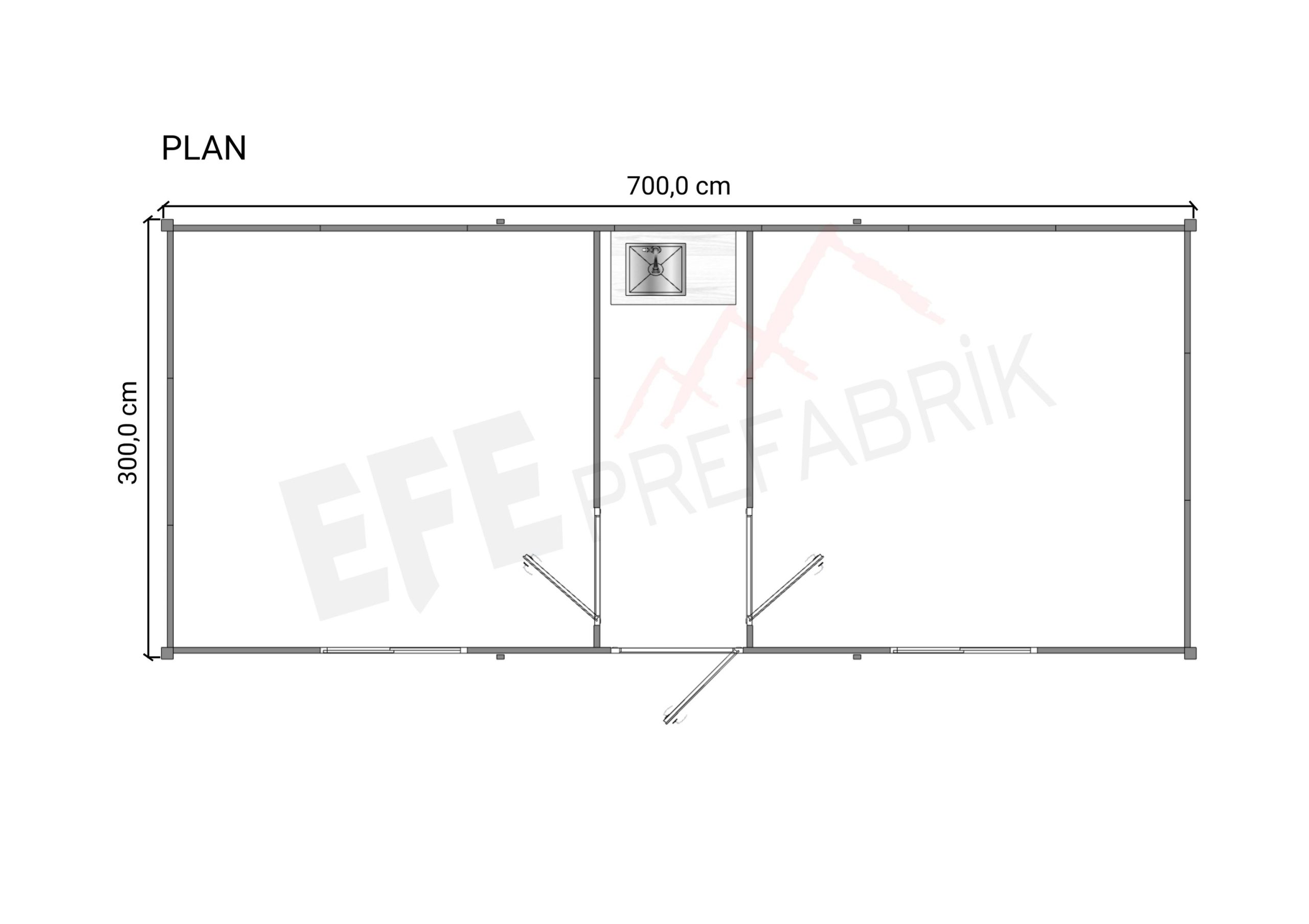 • Kapılar: 1 Adet 90×200 Dış Kapı