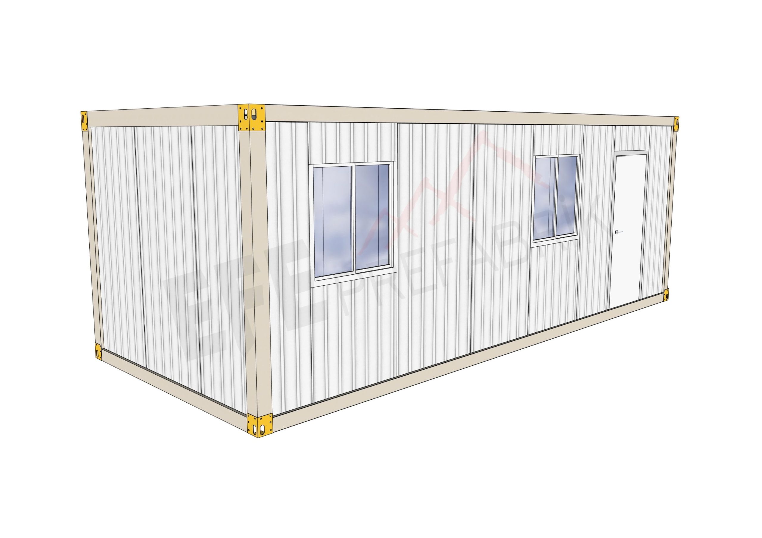 Konteyner tabanlarına güçlendirilmiş galvaniz şase üzerine 14 mm Fibercement kaplanmaktadır. Çürümez, esnemez!