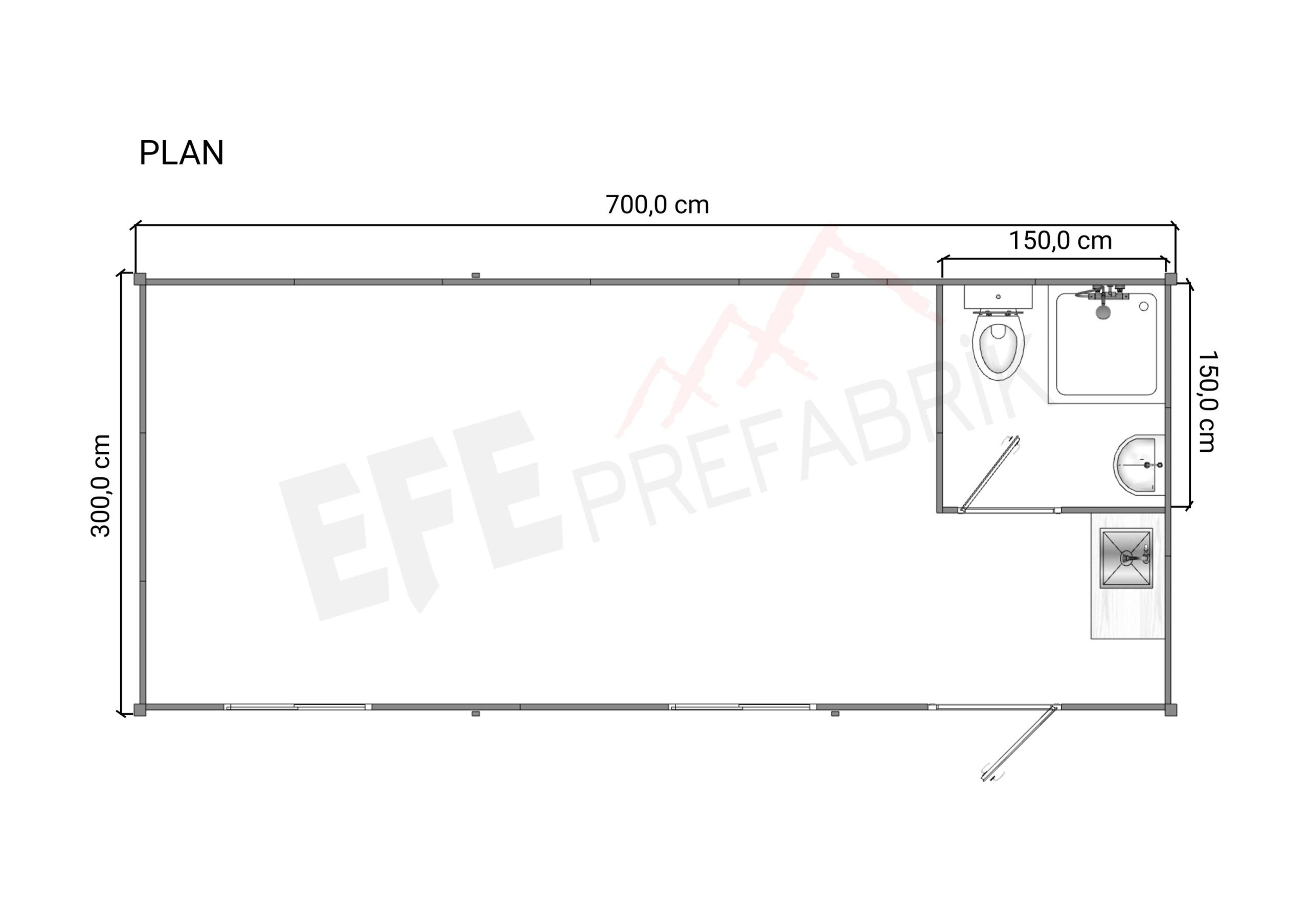 • Kapılar: 1 Adet 90×200 Dış Kapı